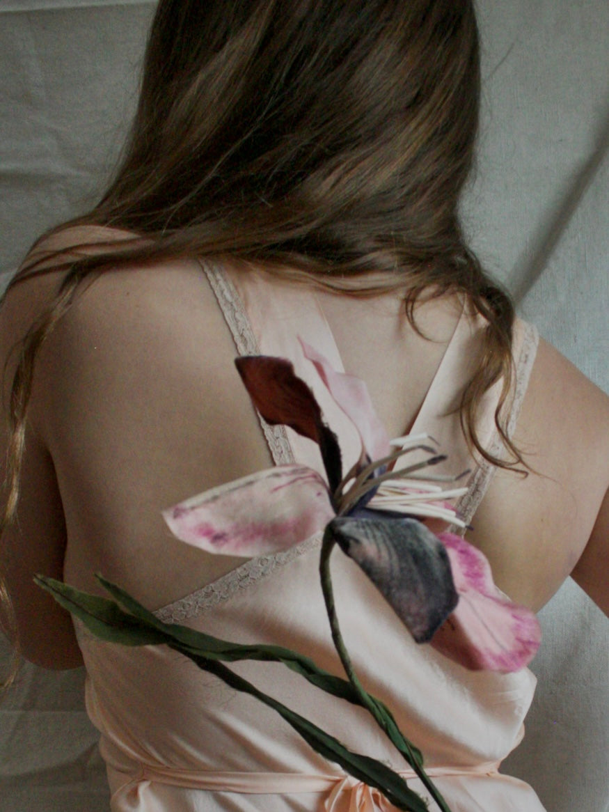 1930s Cream Petal Bust Appliqué Silk Bias Cut Short Slip
