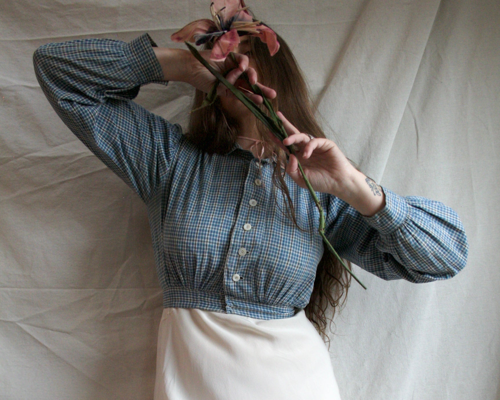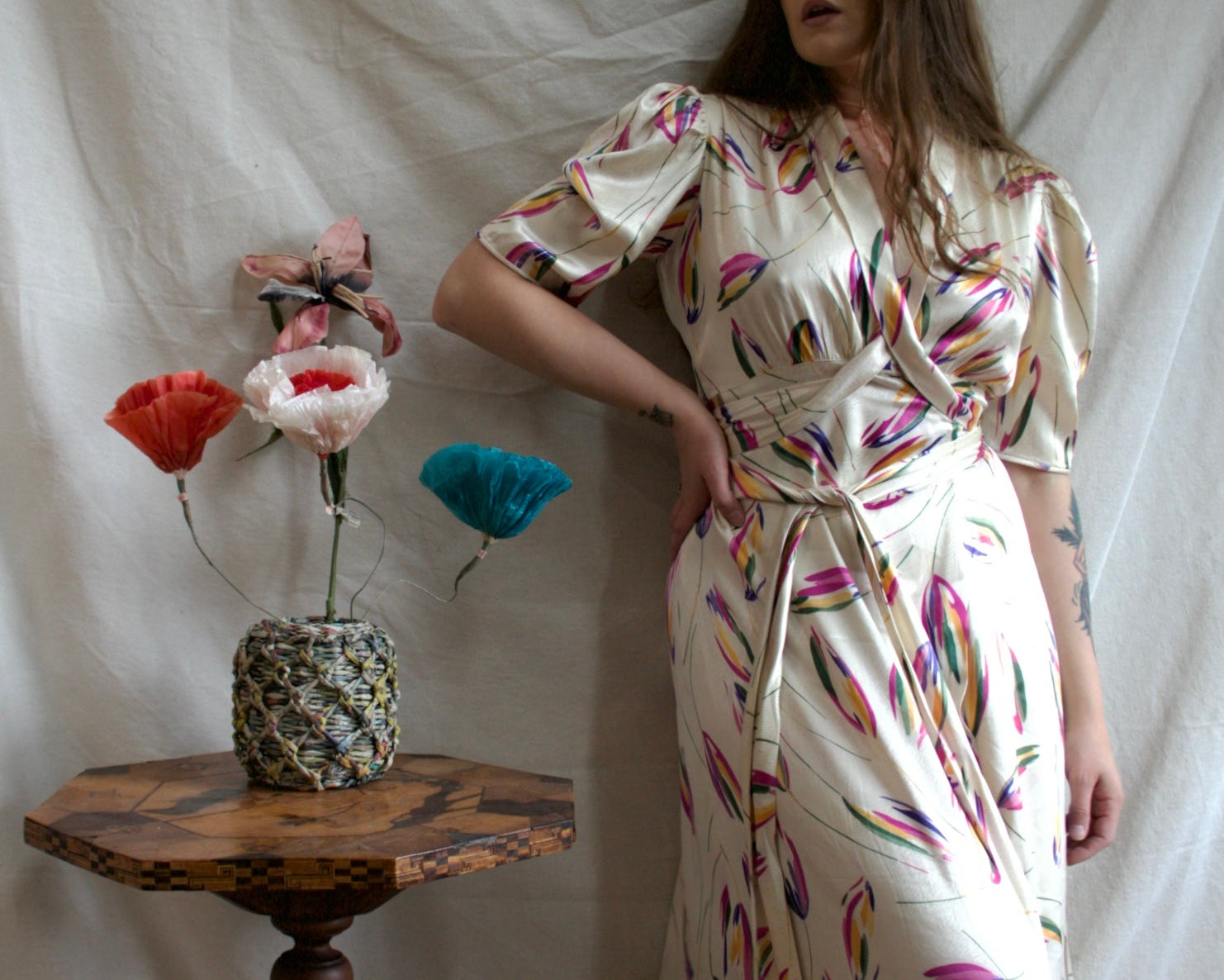 1930s Ivory Crepe Bishop Sleeve Double Tie Waist Gown