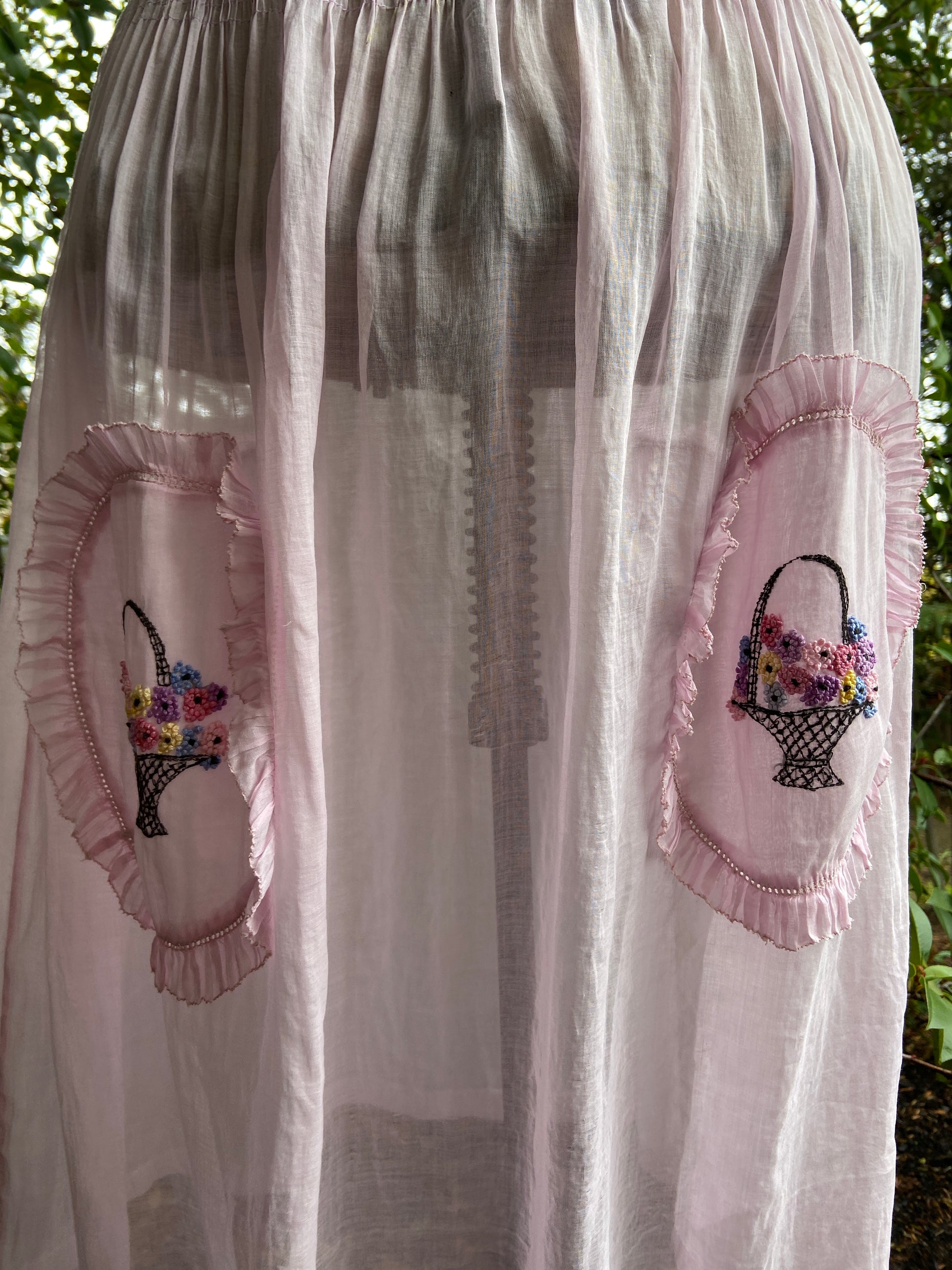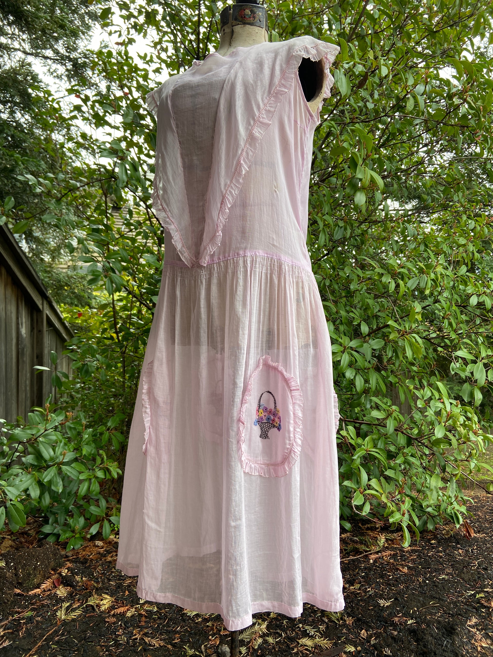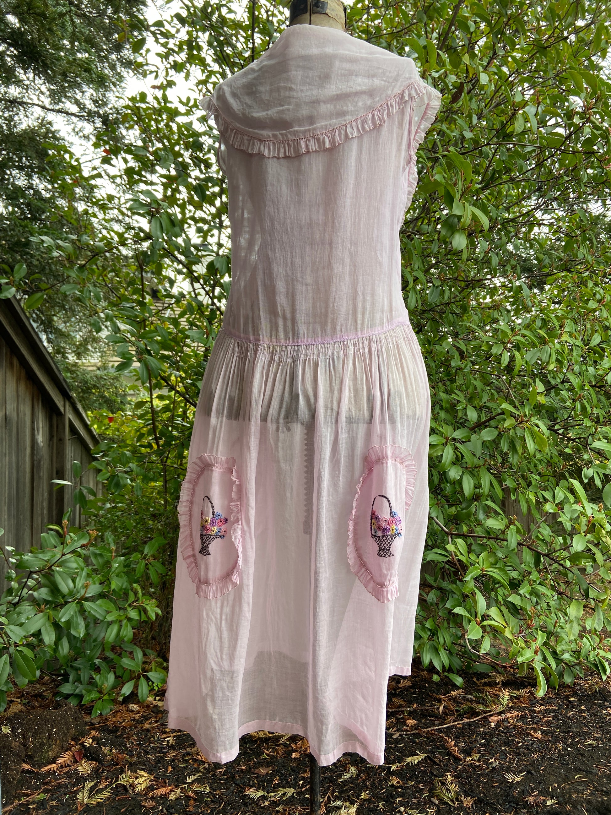 1920s Drop Waist Cotton Voile Flower Basket Dress
