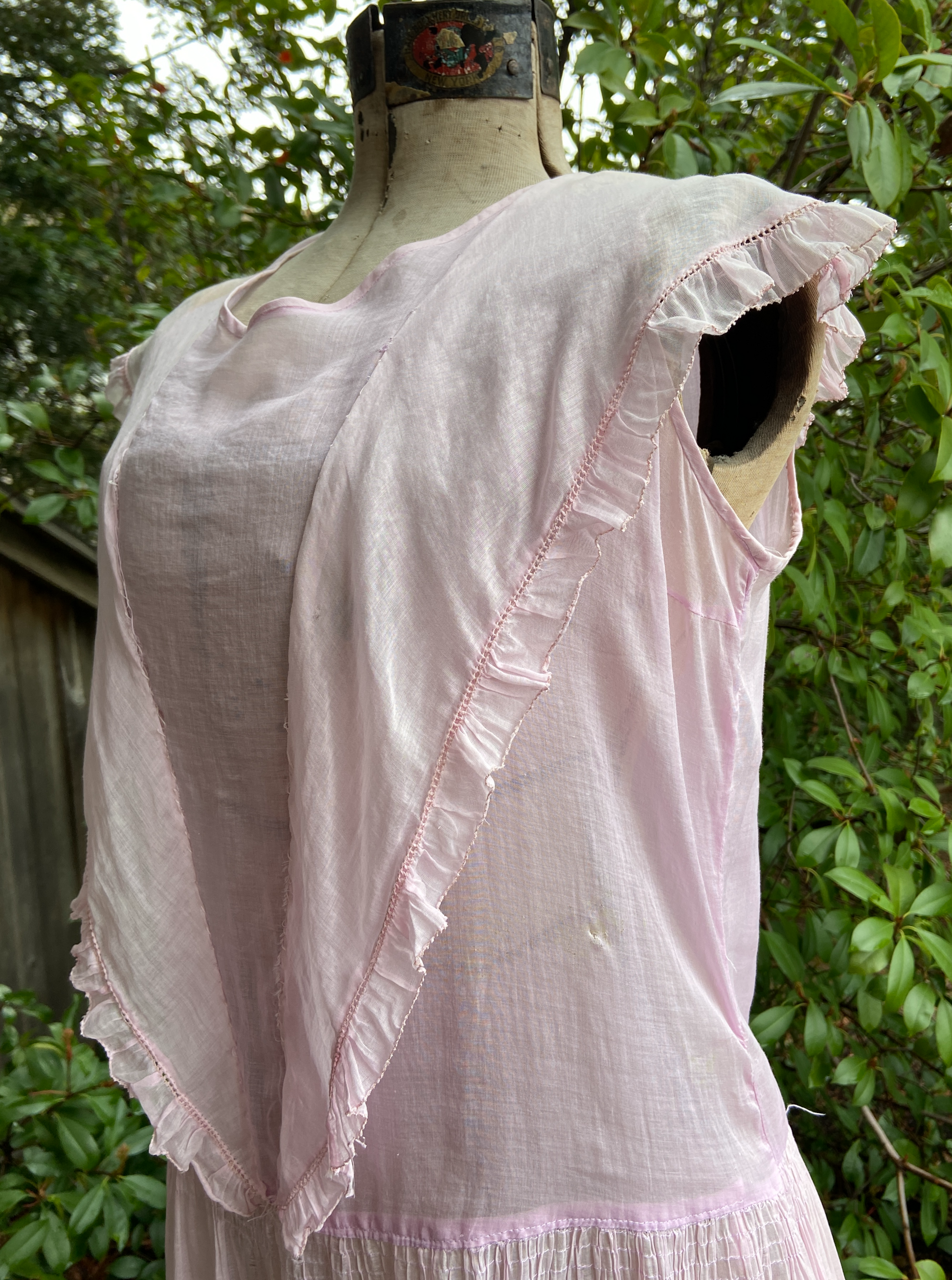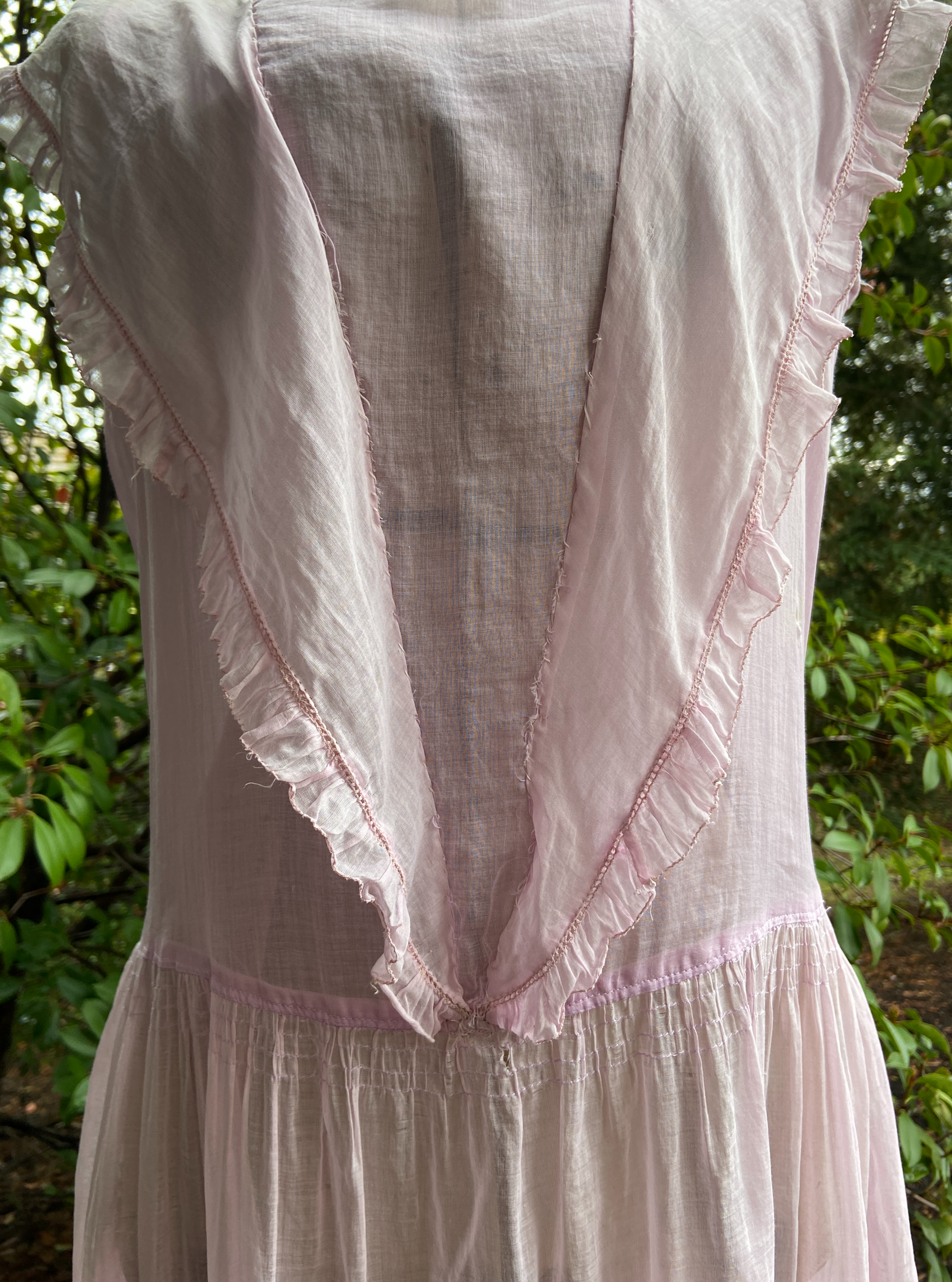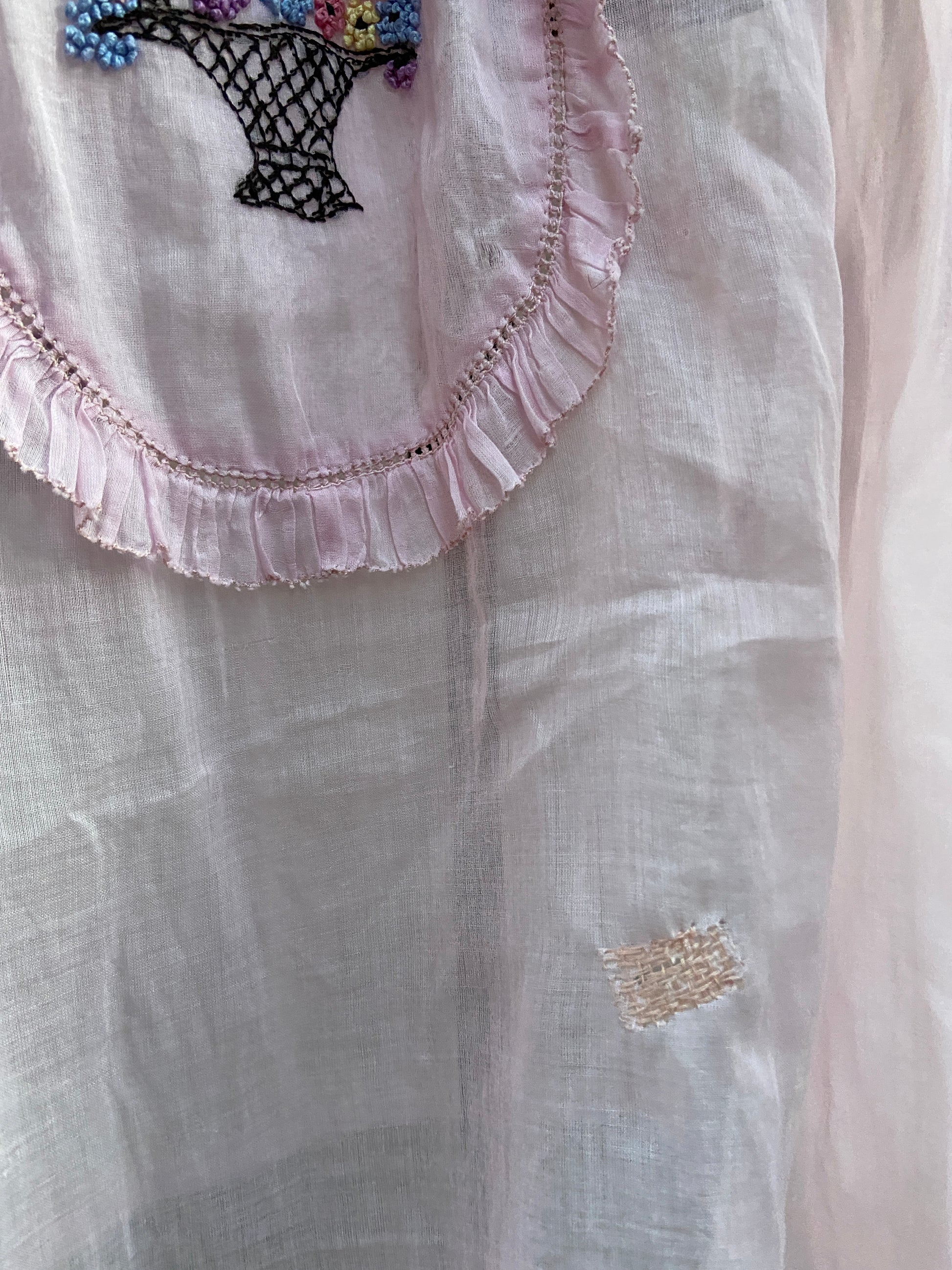 1920s Drop Waist Cotton Voile Flower Basket Dress