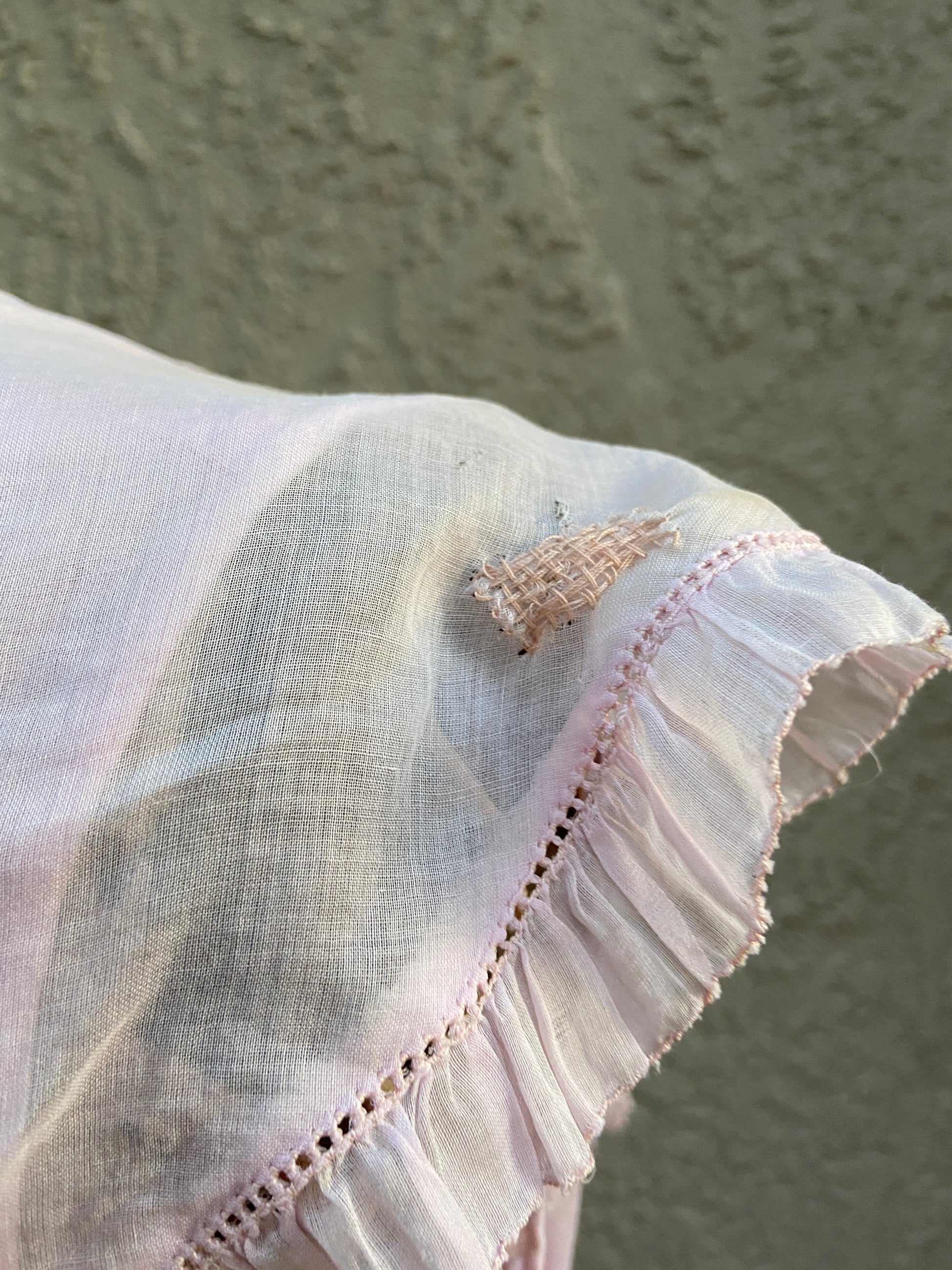 Condition: Good; there is some faint discoloring to shoulders and near back middle waistband as shown and areas where threading is a bit loose. There are a handful of small fabric mends as well in matching thread.