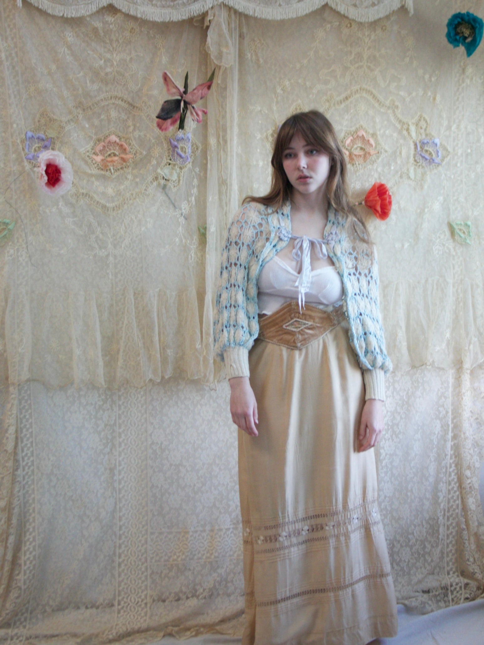 1930 Crochet Wool Knit Silk Ribbon Shrug