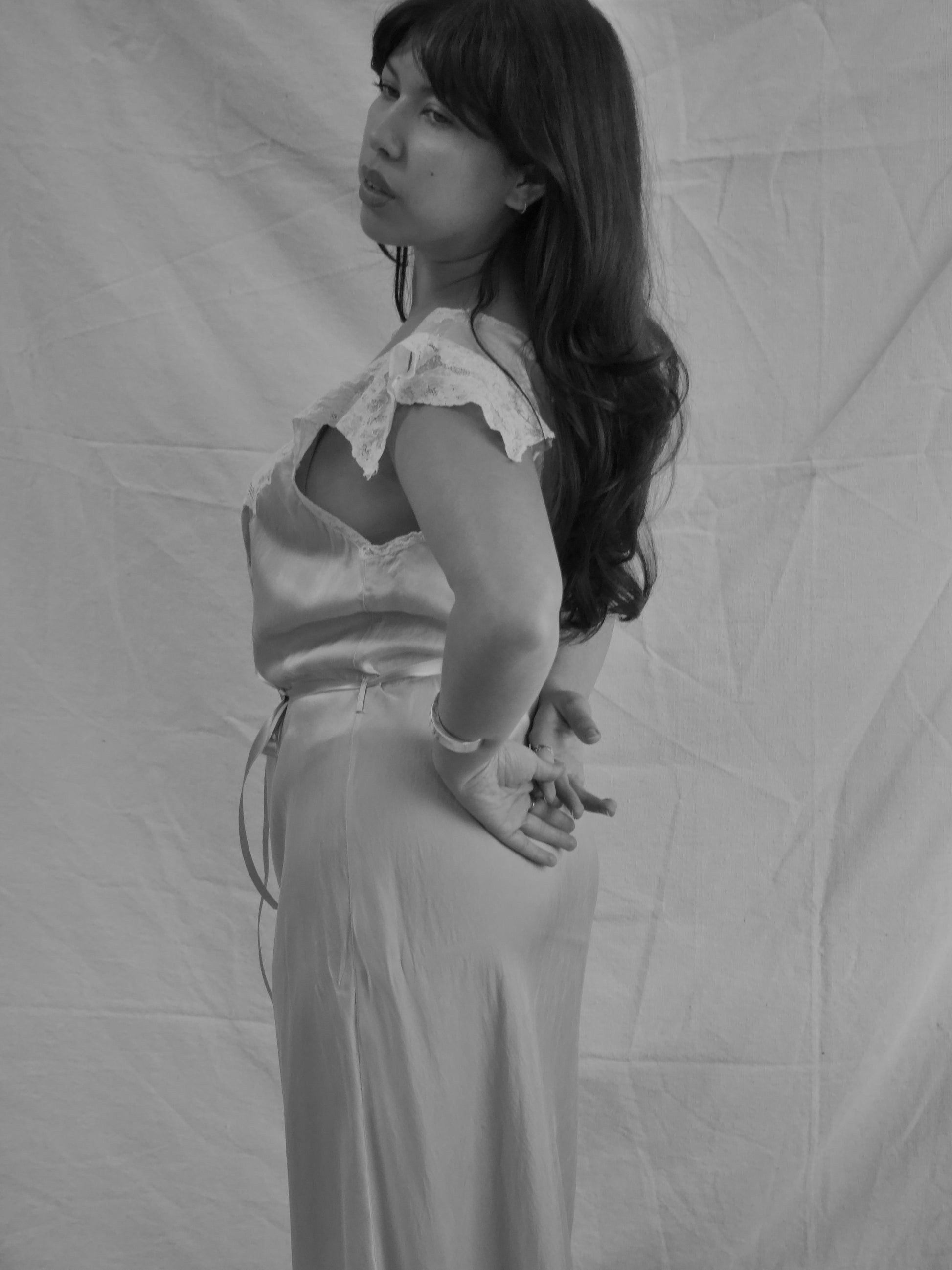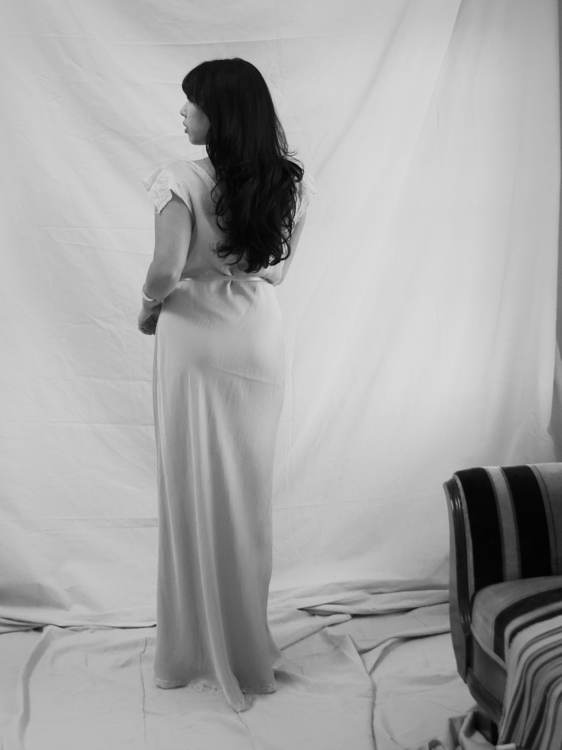 1930s Mauve Silk & Lace Cap Sleeve Bias Cut Braided Belt Slip Dress
