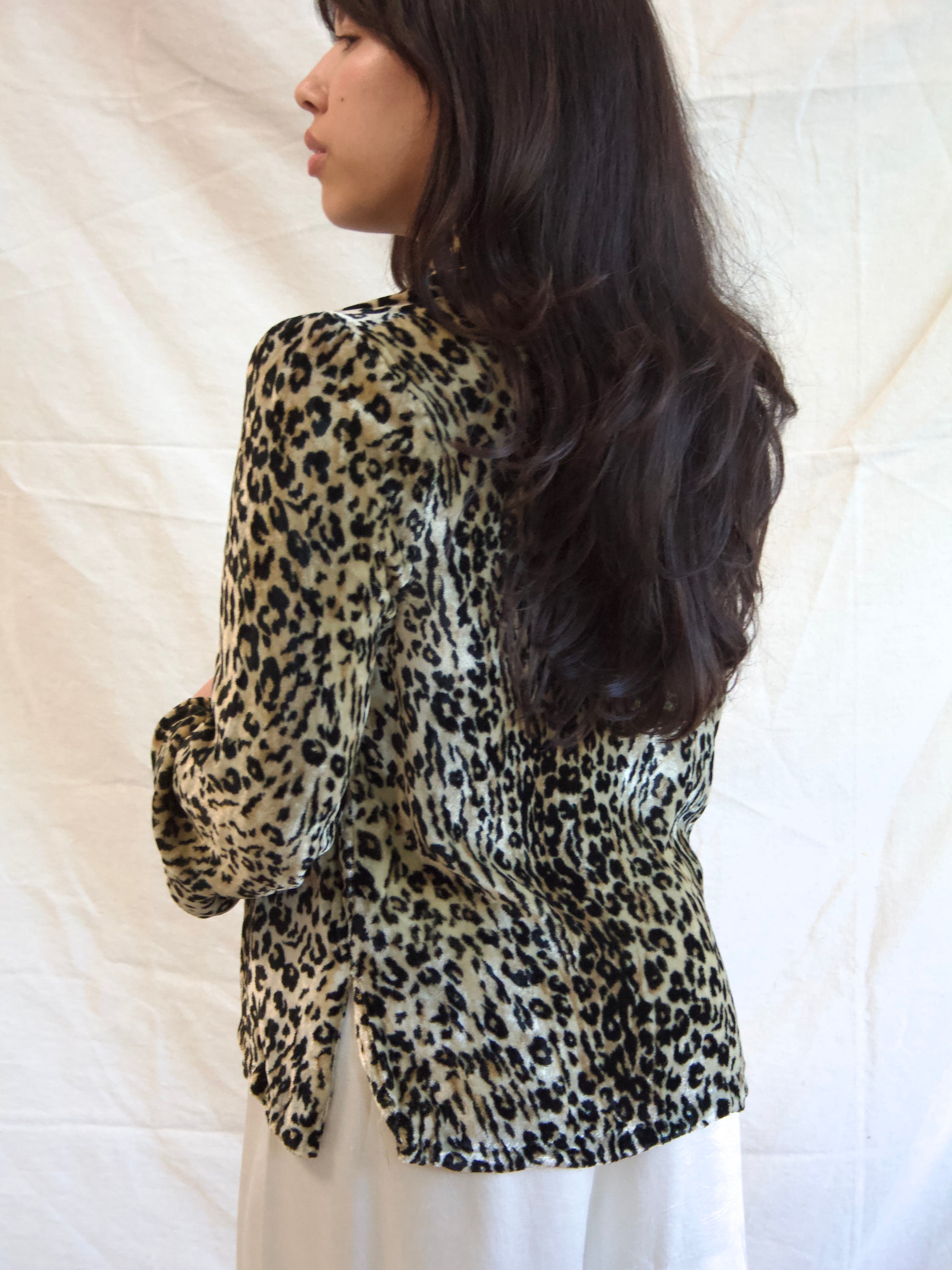 1940s Plush Leopard Print Velvet Mandarine Collar Blouse
