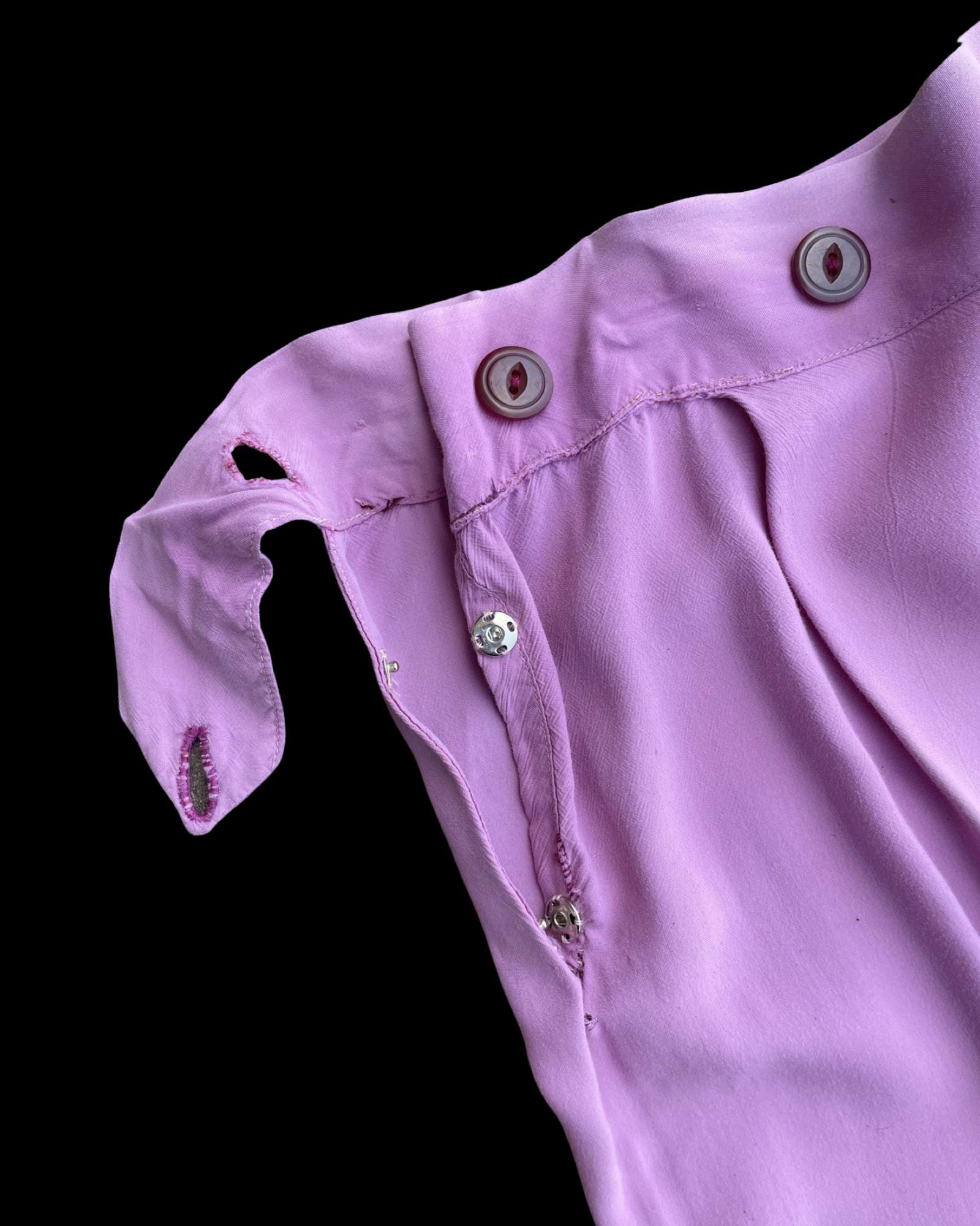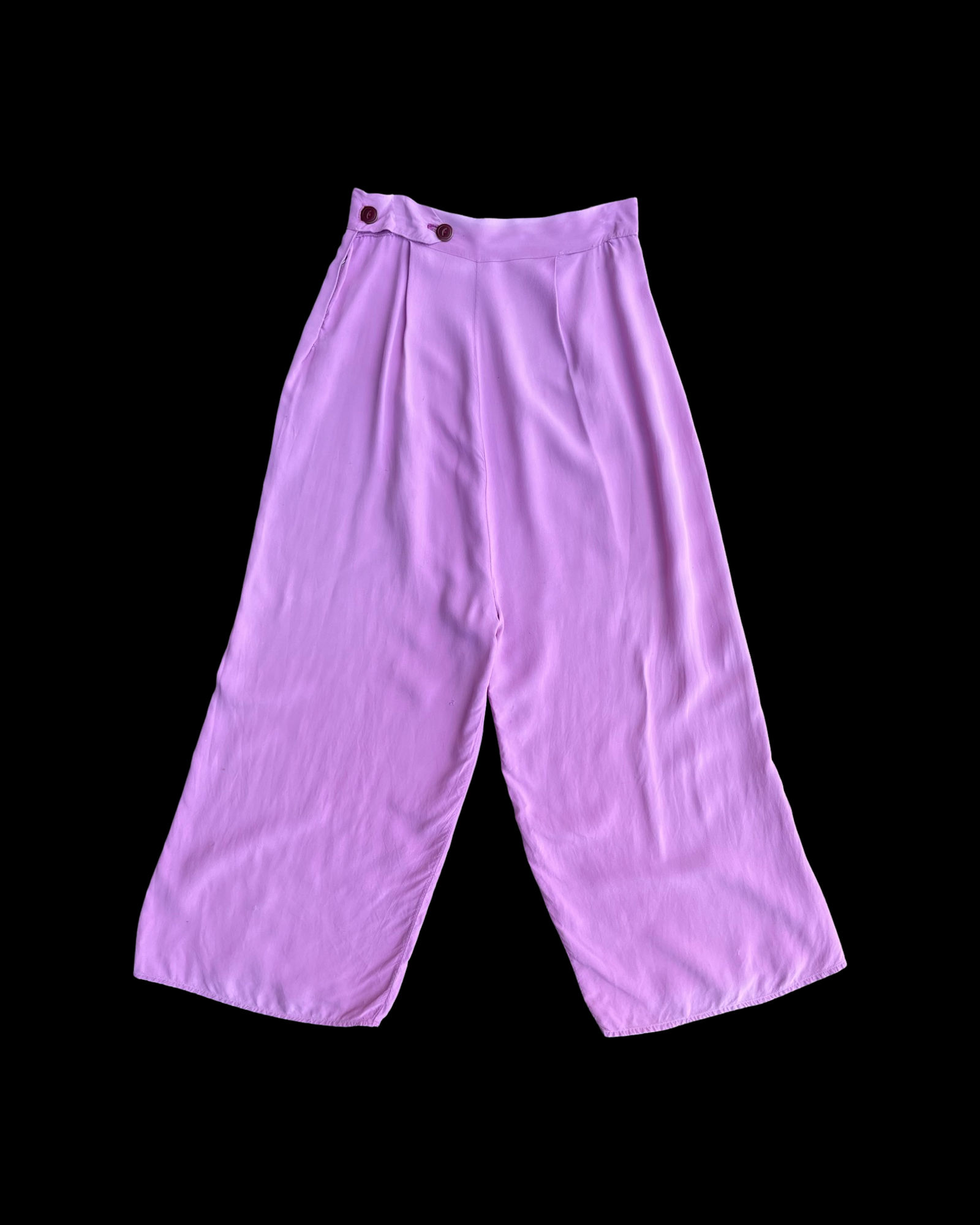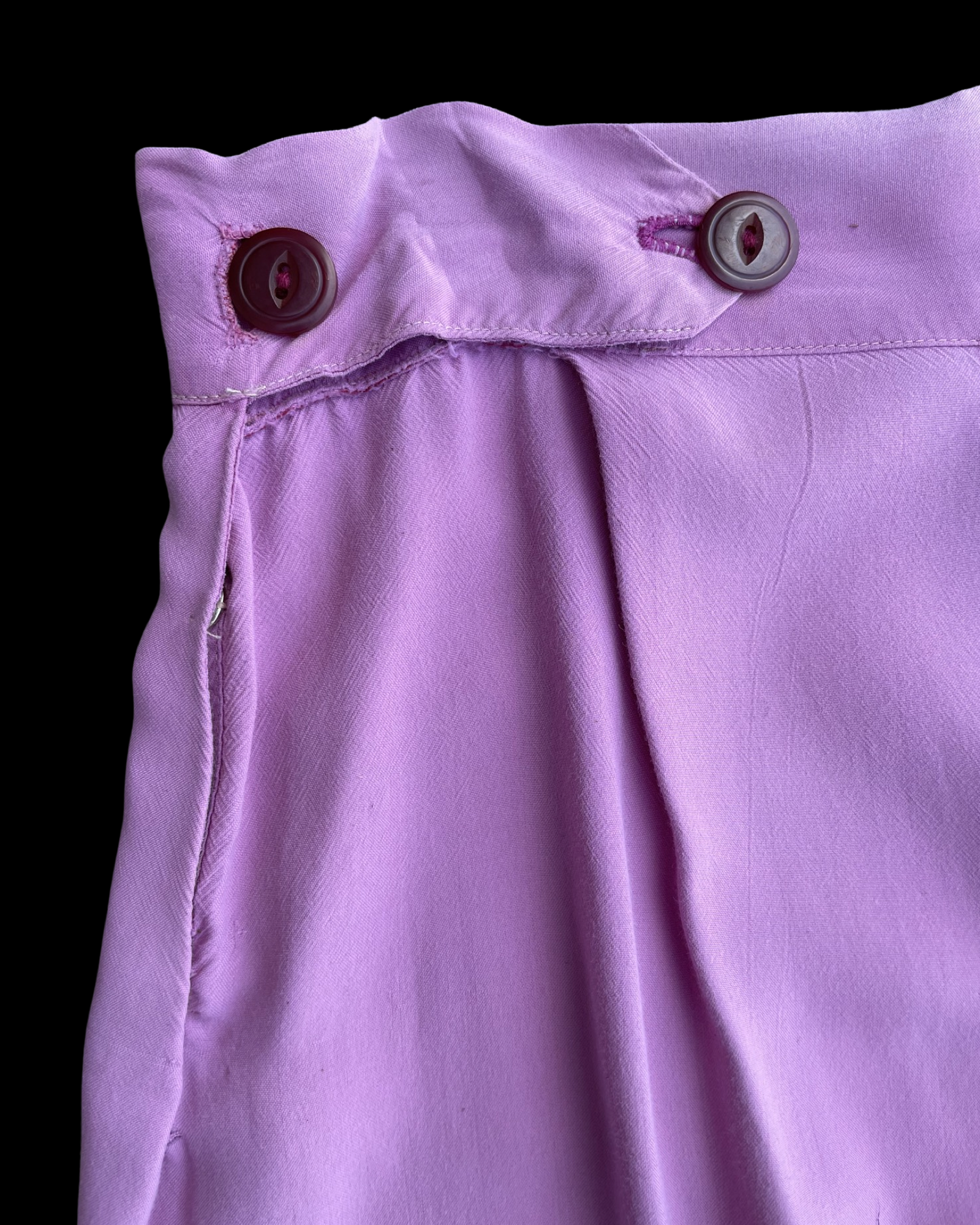 1930s/40s era handmade lilac side button trousers made of a soft and worn in rayon gab.