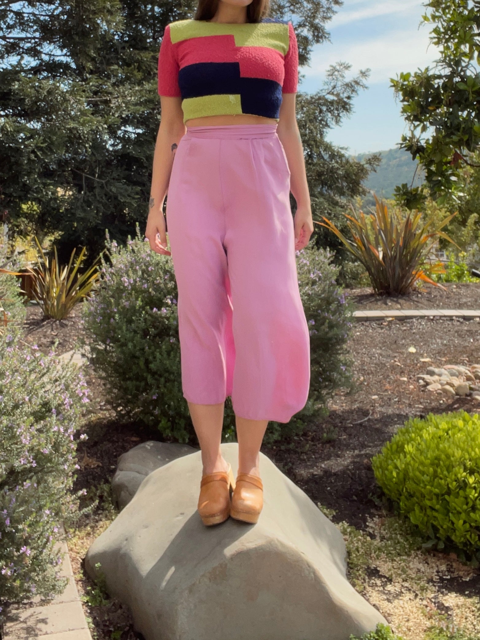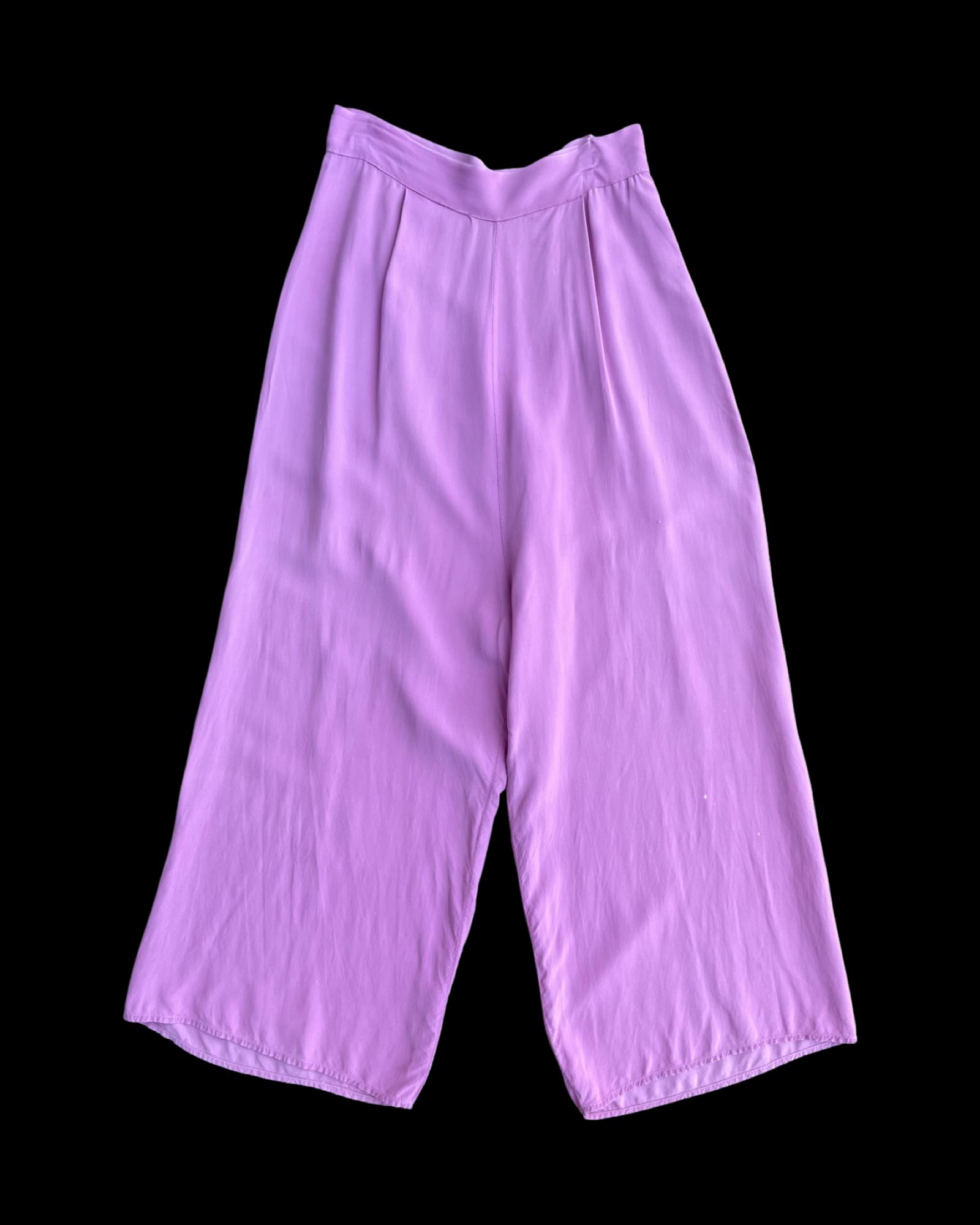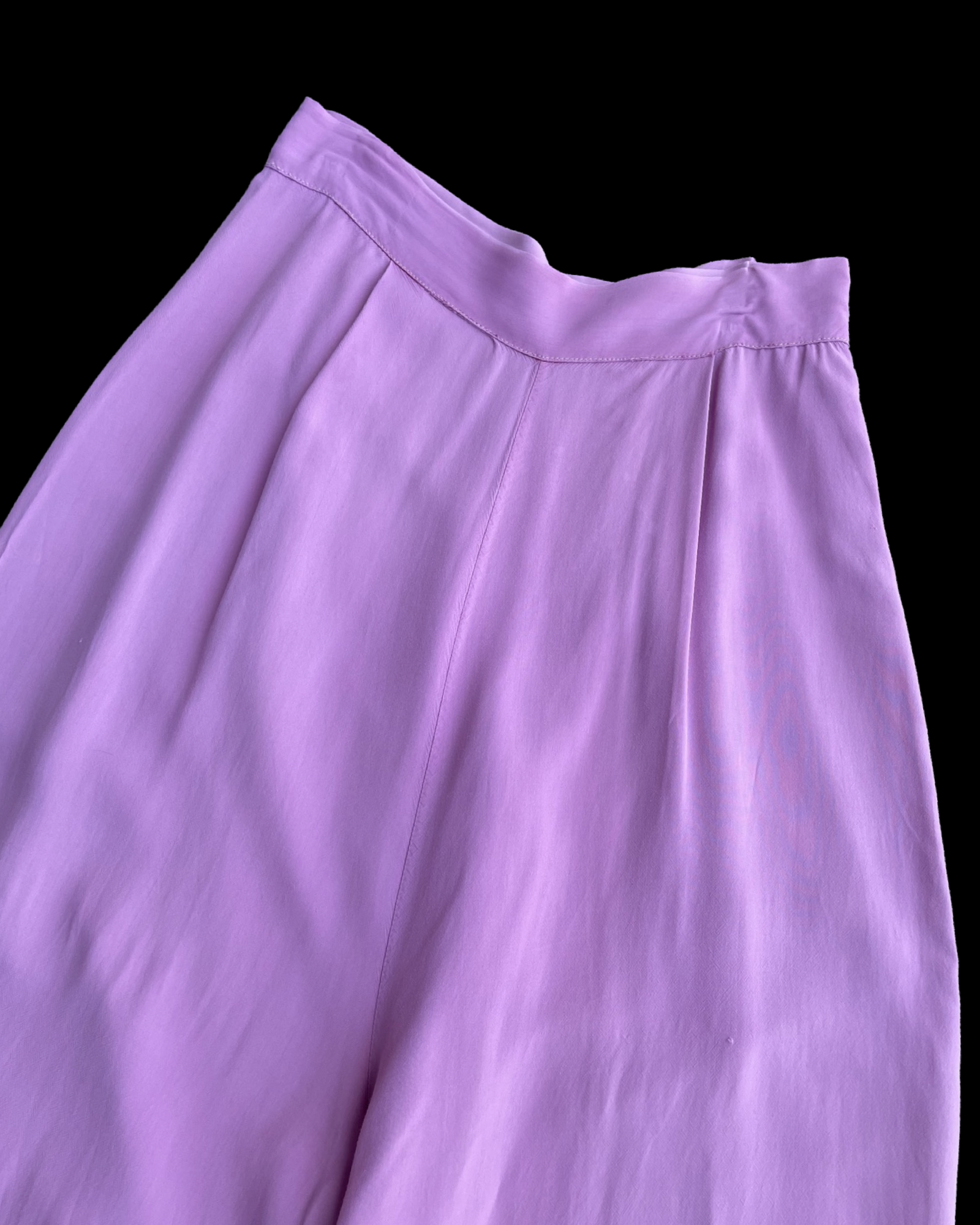 1930s/40s era handmade lilac side button trousers made of a soft and worn in rayon gab.