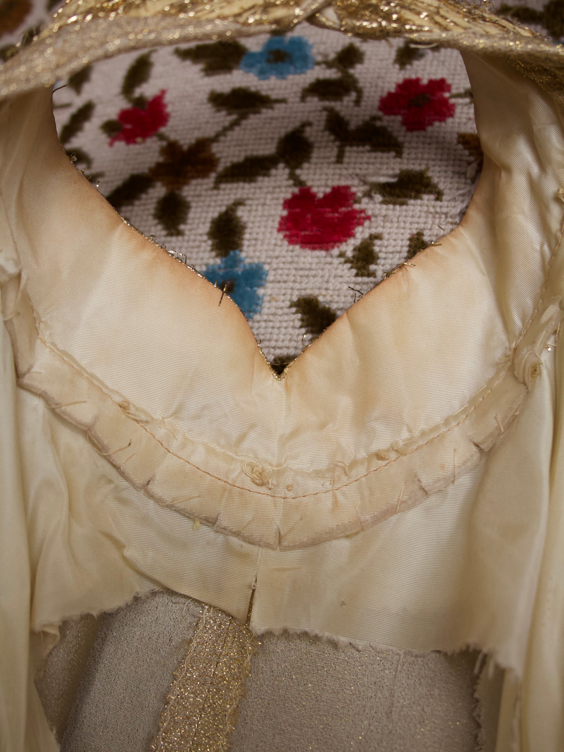 Condition: Good- great; shows some scattered minor loss of metallic strands to neckline and waist as shown