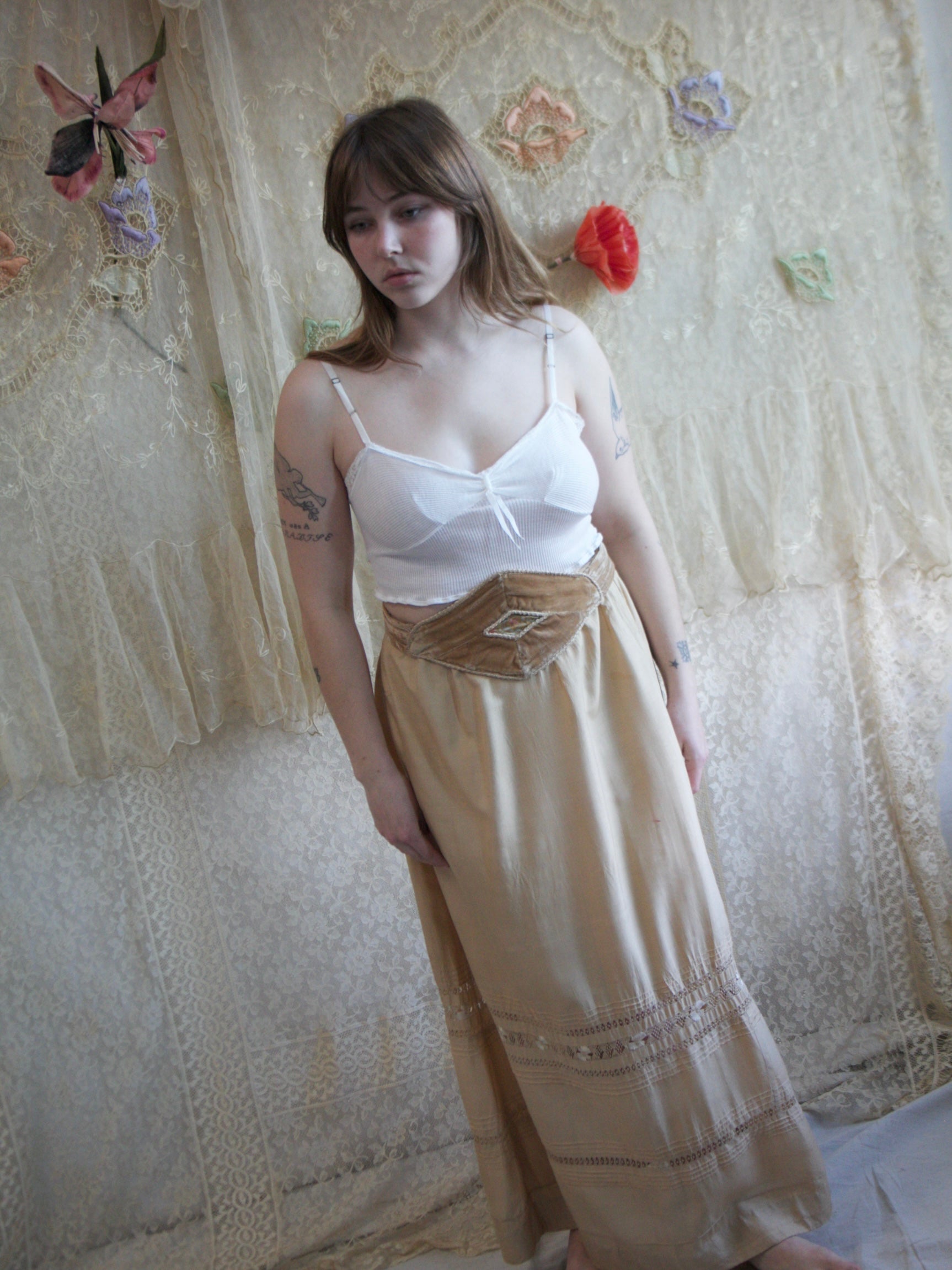 Vintage NOS cropped cotton bralette with bow detailing and adjustable straps, likely 1970s, sourced In Florence Italy.